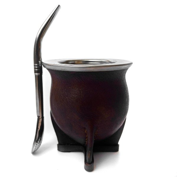 Mate Camionero Uruguayo Premium + Termo de acero inoxidable con manija + Bombilla pico de loro de acero inoxidable