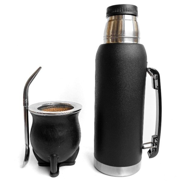 Mate Camionero Uruguayo Premium + Termo Simil Stanley Acero + Bombilla pico de loro de acero inoxidable