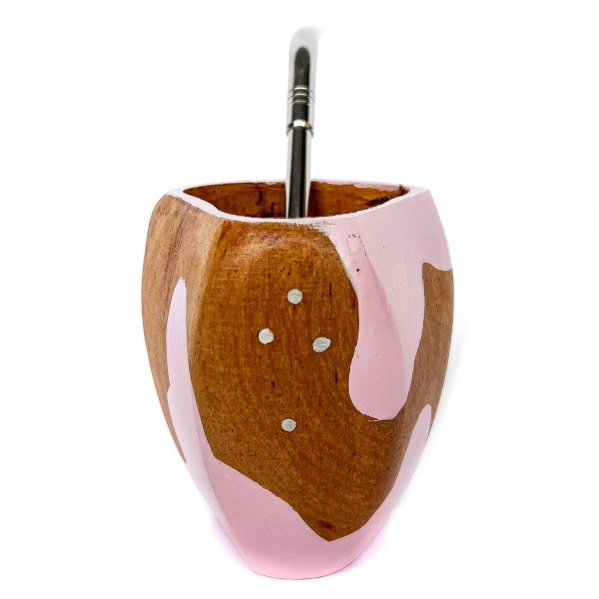 Nuestro mate MUU clásico esta hecho de madera de algarrobo pulida y pinceladas pintadas que imitan la textura tipo "vaca" con color a elección!
